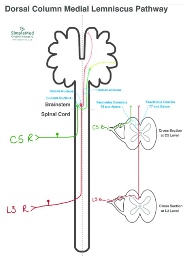 Diagram - The Dorsal Column Medial Lemniscus Pathway from Two Different Spinal Levels