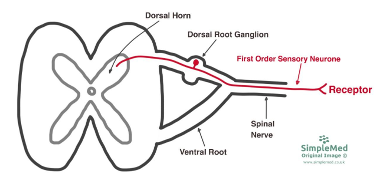 Diagram - The Path of a First Order Sensory Neurone from the Receptor to the Central Nervous System