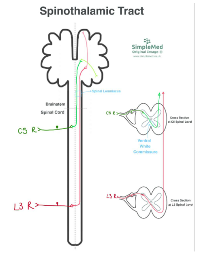 Diagram - The Spinothalamic Tract Pathway from Two Different Spinal Levels