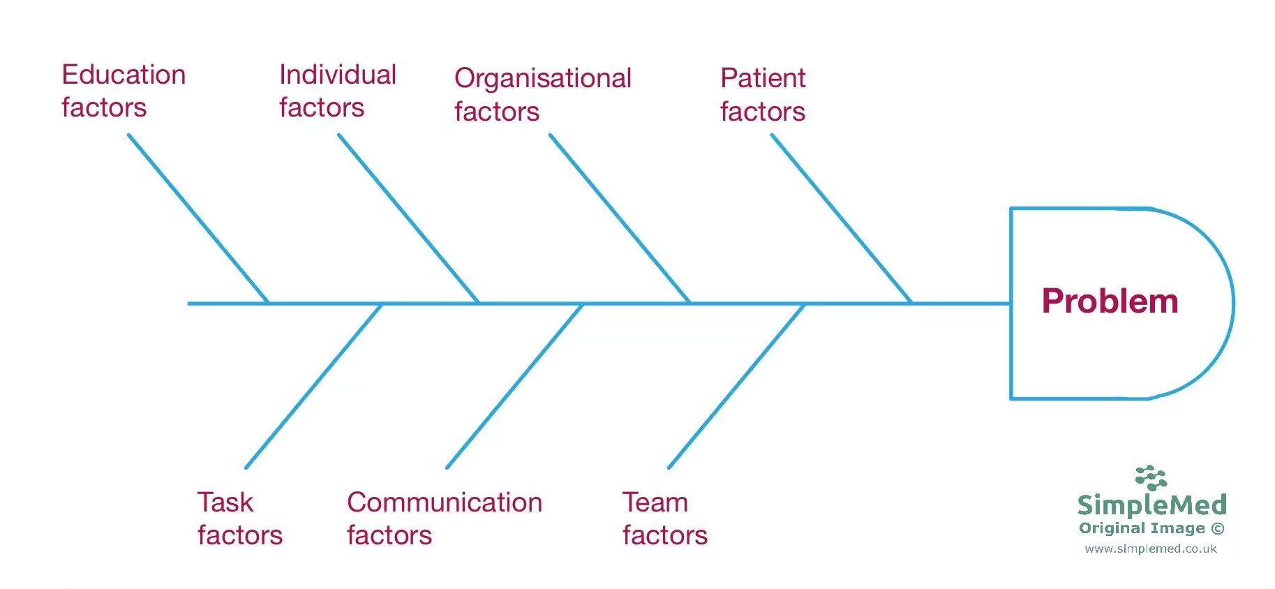 - The 5 Whys - basically asking why until it can’t be answered anymore. e.g. Patient died (why?) because they were given a drug that they were allergic to (why?) because it wasn’t written in their file that they were allergic to it (why?) because it was written in the wrong patient file (why?) because the file was kept in the wrong place (why?) because the current filing system doesn’t work with this many patients. This then finds the root issue which can then be amended to prevent further harms.